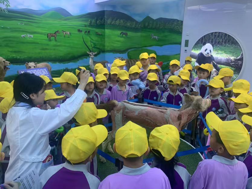 在讲解员和老师的带领下,小朋友参观了生命科学与健康教育馆的各个展区,讲解员通俗趣味的讲解使得小朋友们认真倾听,进入展区之后,小朋友们被各种生动的模型深深吸引,好奇的围着展柜,忍不住发出惊叹,讲解员为小朋友解决疑惑,耐心讲解。在讲解员的科普下,小朋友们进一步了解到了生命进化的神奇,激发了对大自然和生命奥秘的兴趣。