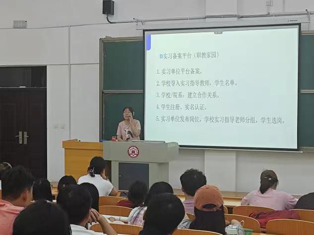 第四项,由牛小艳为同学们讲述实习备案平台的操作流程,针对如何考勤打卡、如何请假以及每月的考试做了针对性的讲解,明确同学在实习期间的考试规范和考试标准。